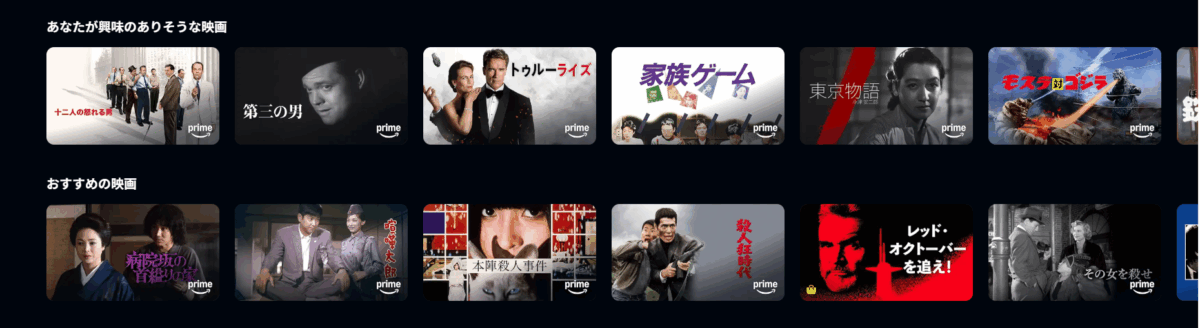 洋画、邦画、ドラマ、韓流、バラエティなどの他に、Amazonオリジナル番組や独占配信があり、プライム・ビデオしか観られない動画が楽しめる充実したラインナップが魅力ですね。