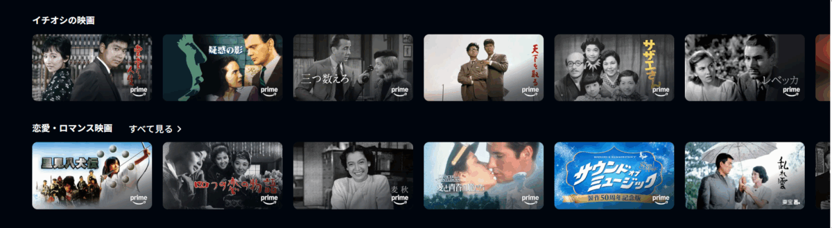 プライム会員特典の対象になっている映画やアニメ・テレビ番組が無料で視聴できます。